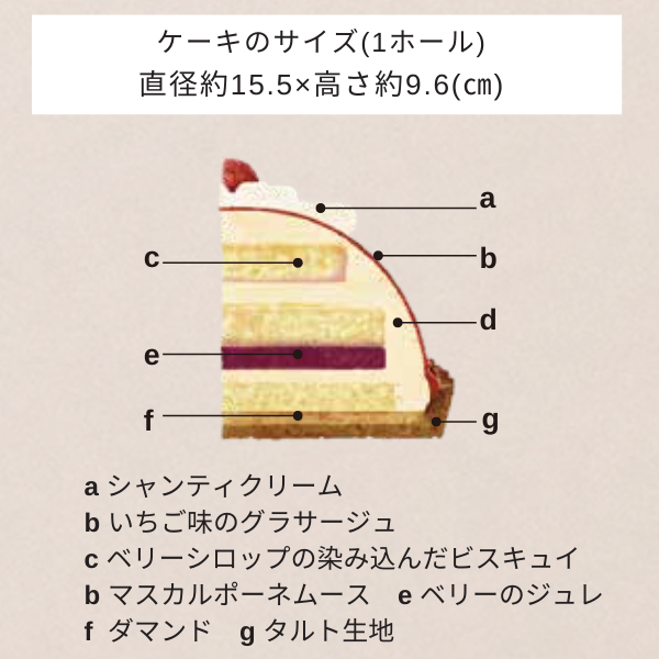 イチゴ味の真っ赤なグラサージュとシャンティクリームの髭でサンタクロースをデザインしたかわいらしいケーキです