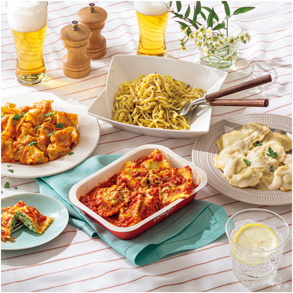 ●内容量:リコッタとほうれん草のラビオリ(トマトソース)300g、リコッタとほうれん草のファゴッティーニ250g、タリアテッレクリームソース(トリュフ入)250g、ポルチーニ茸のラビオリ300g