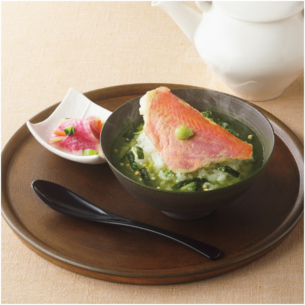 九州産の本醸造醤油をベースに、宗田鰹節から抽出しただしと宇治玉露の粉末をブレンドしたお茶漬けのギフトセット。お湯を注ぐだけで簡単本格茶漬け。