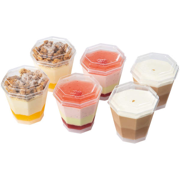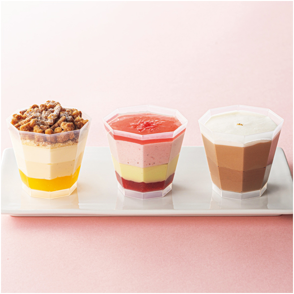 ANA機内食担当のシェフパティシエが監修したケーキセット。何層にも重ねたムースやジュレに、チョコチップなどで食感のアクセントをつけました。