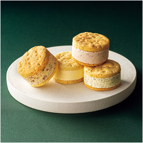 北海道産のバターを使用し、ホロっとした食感に焼き上げたサブレにラムレーズンやあまおうなどの4種類のバタークリームをサンドしました。