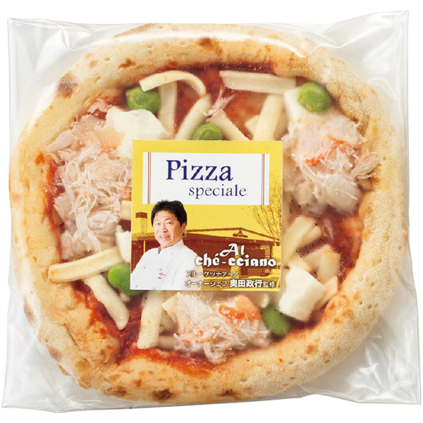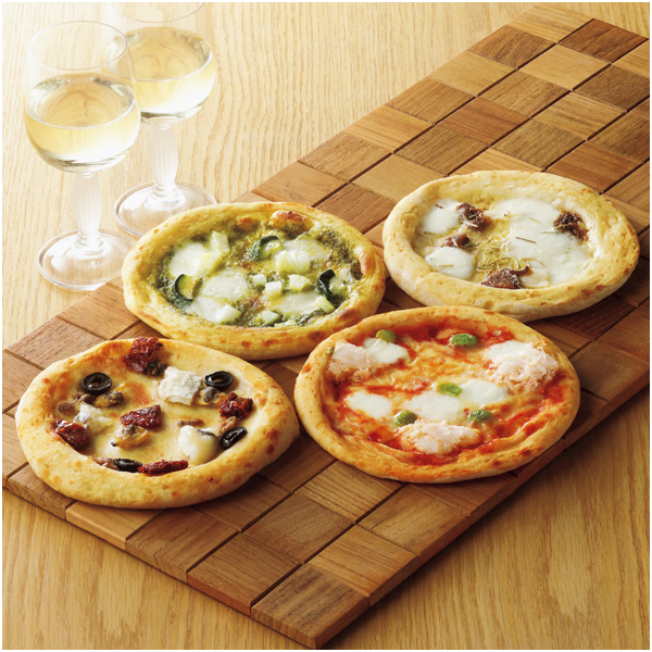 ●内容量:マルズワイガニとだだ茶豆のピザ130g、白身魚と魚介たっぷりのマリナーラピザ95g、シチリア産アンチョビとガーリックのピザ86g、ローストイカとイタリア産グリルズッキーニのジェノベーゼピザ105g