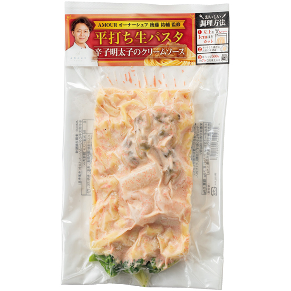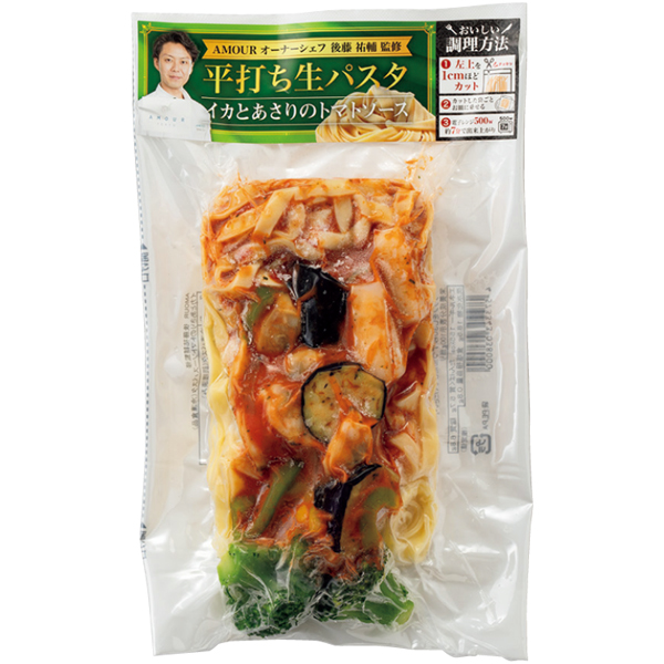 後藤祐輔シェフ監修。ツルツル&もちもちした食感の平打ちパスタに、シェフのこだわりが詰まった2種類のソースをセットにしました。