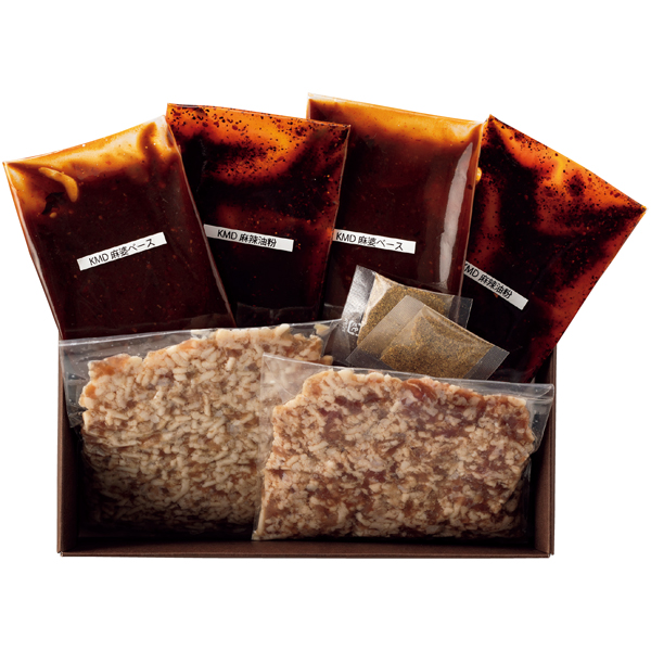 ●内容量:牛ひき肉100g(オーストラリア産)・KMD麻婆ベース50g・KMD麻辣油粉23g・花椒0.4g 各2(4人前) ※のしはご容赦ください