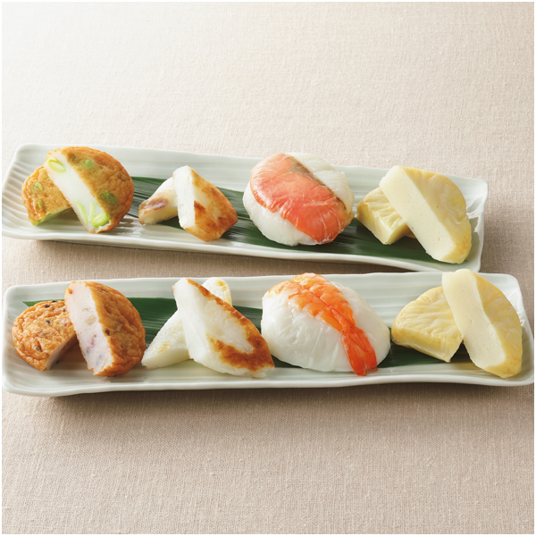 ●内容量:笹かまぼこ「吉祥」6、ささ小町チーズ入3、おとうふ蒲鉾(プレーン、ゆず入)、海鮮蒲鉾(えび、紅鮭)、揚蒲鉾(枝豆、五目)