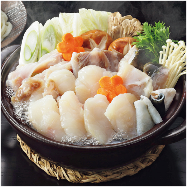 ふぐちりは旨みたっぷりで奥深い味わい。とらふぐ皮のしゃぶしゃぶ・とらふぐ皮の入ったうどんと共にご堪能ください。