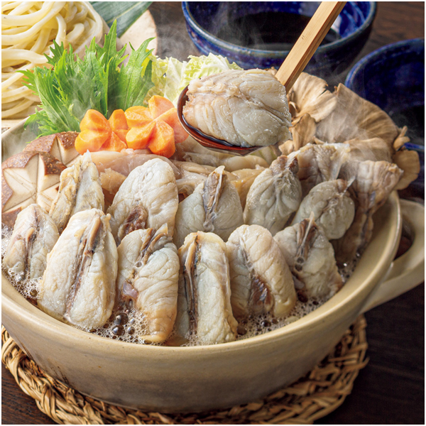 旨みたっぷりのふぐちりを2回楽しめるよう小分けにしました。とらふぐ皮の入ったうどんと共にご堪能ください。