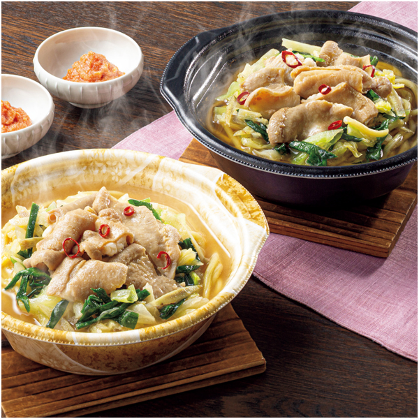 電子レンジ調理ができる個食もつ鍋。辛子明太子はお好みで、もつ鍋にかけても、ご飯のお供としてもお楽しみいただけます。