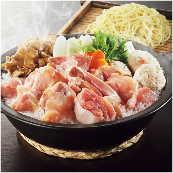 ●内容量:福岡県産はかた地どり(ぶつ切り300g、もも切身200g)、はかた地どりつみれ200g(各原料:肉/福岡県産)、スープ600g、乾麺80g、コラーゲン50g