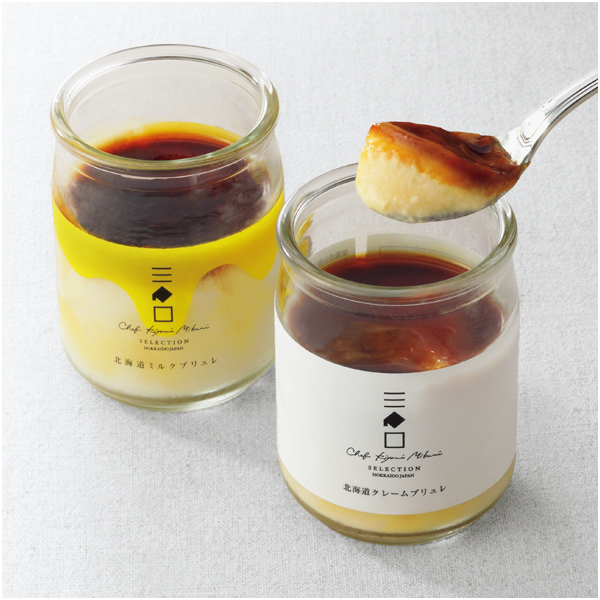 北海道の雪景色をイメージしたミルクブリュレと、奥深い味わいのクレームブリュレをセットにしました。