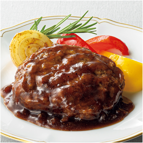霧島黒豚のハンバーグを和風・洋風の3種のソースでじっくり煮込みました。