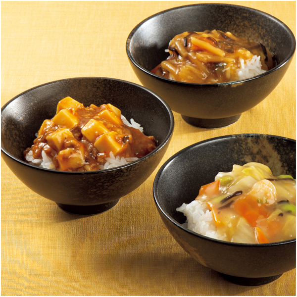 ●内容量:中華丼の具(醤油味)90g×4、中華丼の具(塩味)90g×4、麻婆豆腐丼の具90g×4