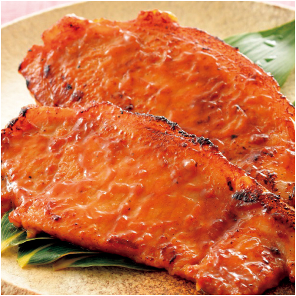 宮崎県認証ブランド「霧島黒豚」のロース肉を老舗の味噌だれ4種に漬けました。