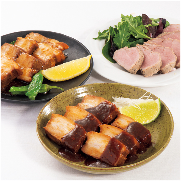 ●内容量:豚肉の味噌煮込み210g、豚ひれ肉のやわらかローストポーク100g、豚肉の和醤煮込み210g