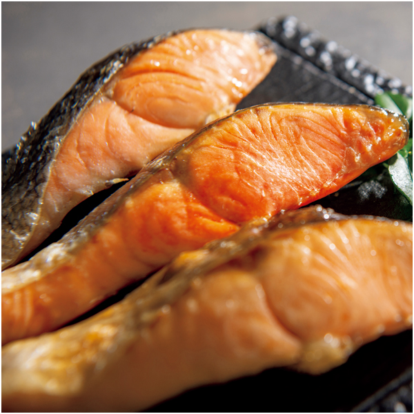 塩水で漬けた後、低温で熟成、軽く干し上げる三段仕込み製法。秋鮭、時鮭、紅鮭と3種類の鮭でお楽しみいただけます。