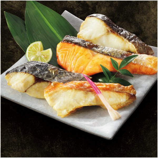●内容量:西京漬(銀だら60g・金目鯛60g・さわら60g・銀さけ65g)各2