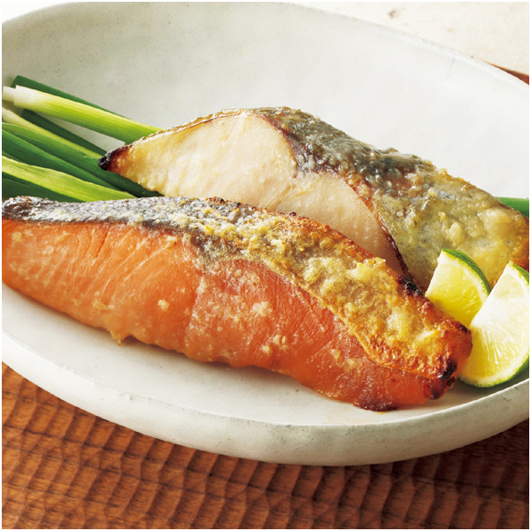 ●内容量:さわら西京漬70g・秋鮭西京漬60g・銀ひらす西京漬60g・さば西京漬60g 各2 計8(個包装)