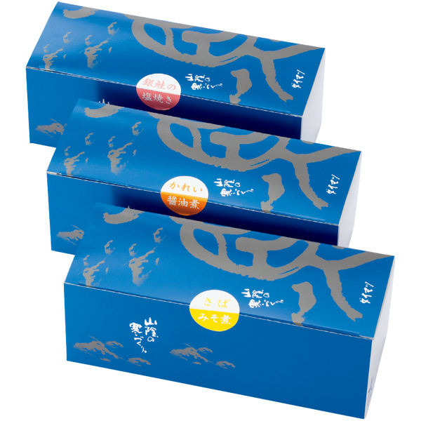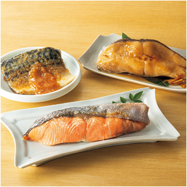 ●内容量:かれい醤油煮100g×3、銀鮭の塩焼き60g×3、さばの味噌煮90g×4