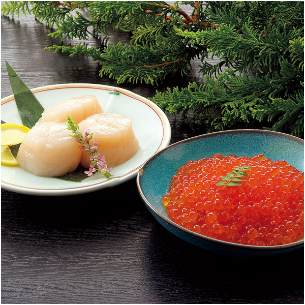 北海道産のいくらとほたてのセットです。北の味覚をご堪能ください。