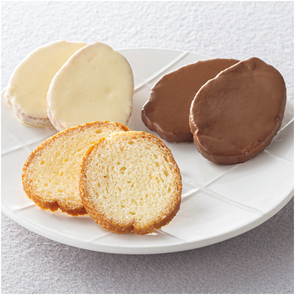 バニラ、ショコラ、ホワイトチョコの3種のフレーバーを楽しめるラスクをセットにしてお届けいたします。