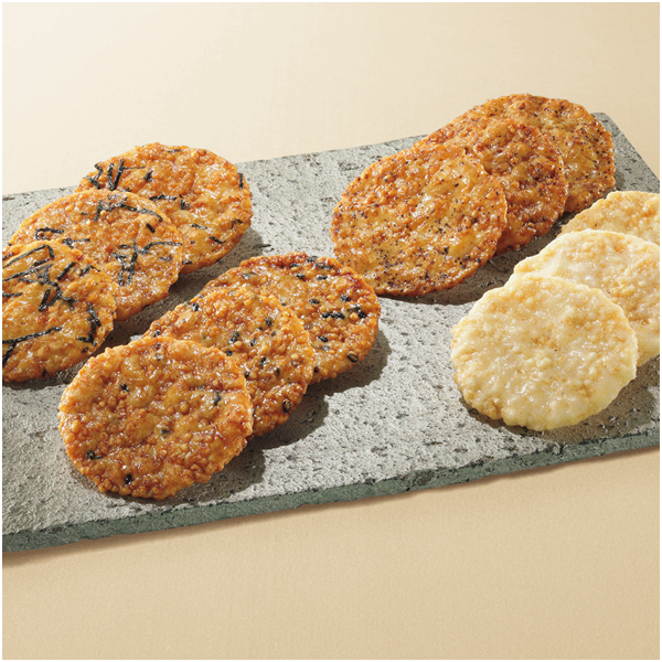 窯ど炊きご飯の底についたおこげをイメージしたお煎餅です。4種類を詰合せました。