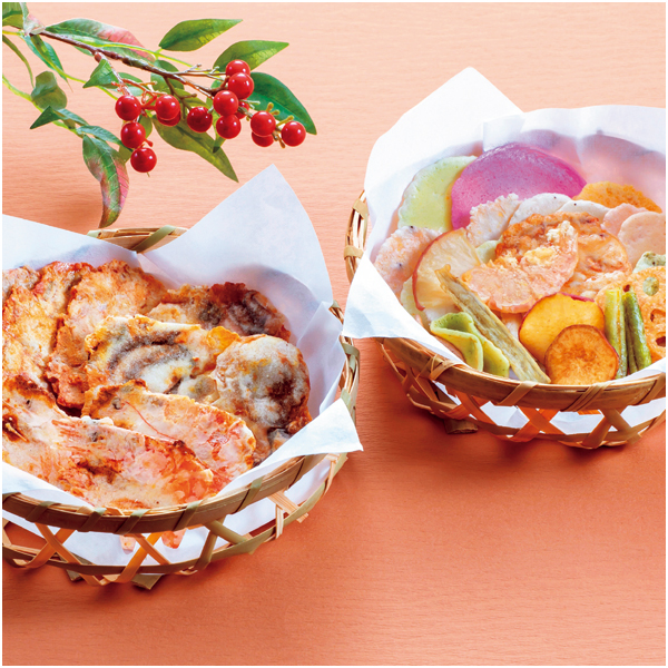 ●内容量:味好み(海老・いか・りんご・ごぼう)各2、烏賊姿焼き2、たこ唐揚げ2、海老姿焼き