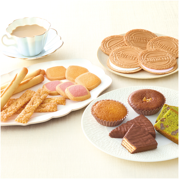 ゴーフレット、パピヨット、サピニエールなど、人気の焼菓子をバラエティ豊かに詰合せました。
