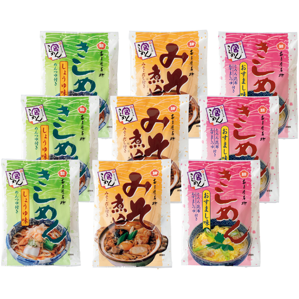 定番のしょうゆ味とみそ煮込、おすまし味のきしめんの3種を詰合せました。