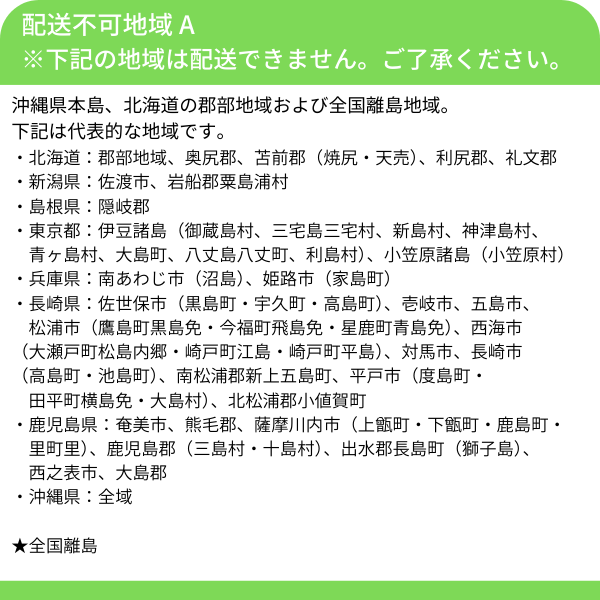 ●全国離島地域他、一部お届け不可の地域がございます。詳細は商品画像をご確認ください。