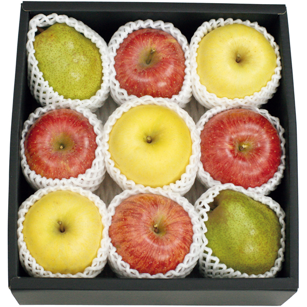 ●内容量:サンふじりんご4個(秀品)、ラ・フランス2個(秀品)、シナノゴールド又ははるか他3個(秀品)、計2.8kg以上