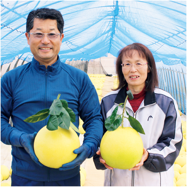 晩白柚は甘みと酸味のバランスが良く、爽やかな香りが特徴の柑橘最大級の大きさ。見て、香って、食べて楽しめる三拍子揃った晩白柚をお楽しみください。
