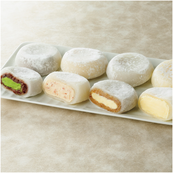 もち粉にメレンゲを合わせた柔らかい求肥で、こだわりのクリームを包みました。4つの味が楽しめます。