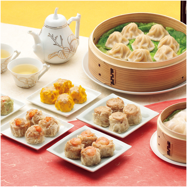 各種焼売と蝦仁餃子、小籠包を詰合せた彩りも華やかなセットです。