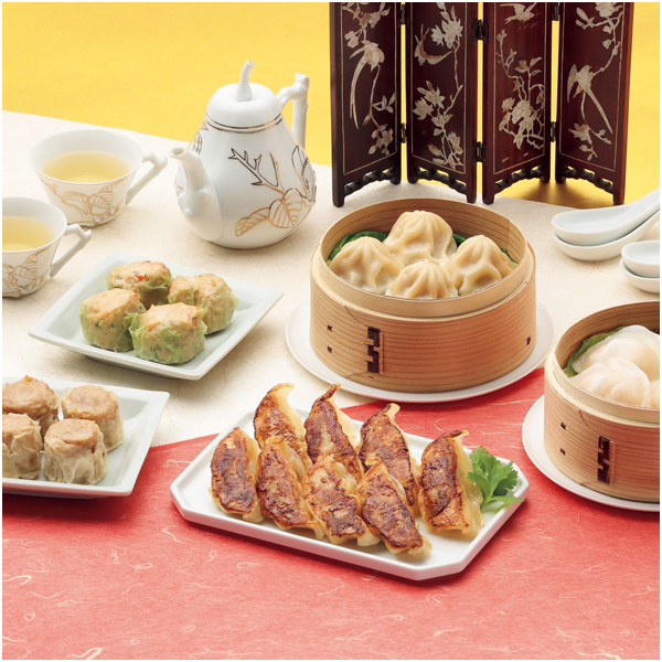 ●内容量:餃子25g×8、重慶焼売35g×4、野菜焼売30g×4、蝦仁餃子25g×4、小籠包30g×4
