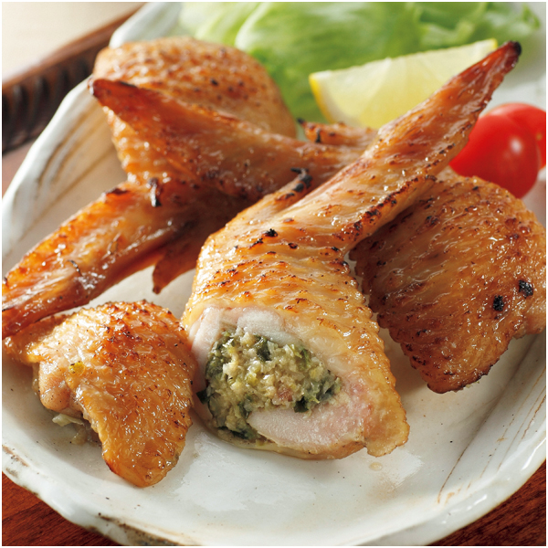 霧島黒豚と野菜の餡、チーズを詰めた手羽先のセットです。揚げたり焼いたり、お好みでご賞味ください。