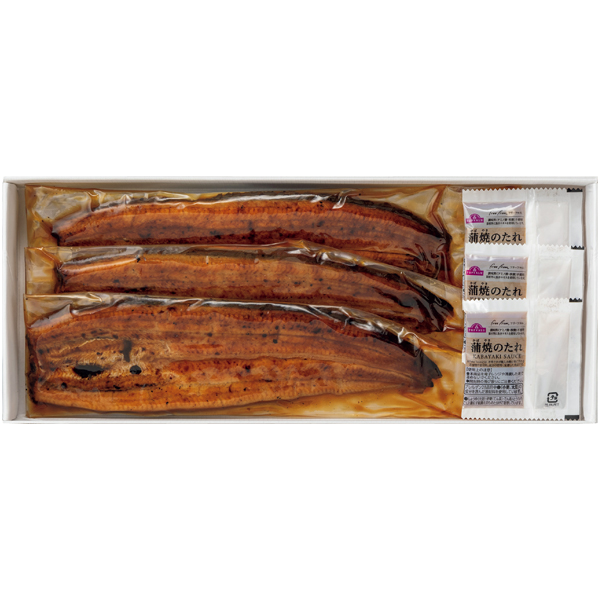 ●内容量:うなぎ蒲焼(鹿児島県産原料、真空パック)3 計390g、山椒付きたれ3