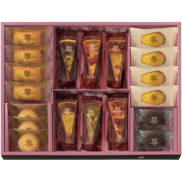 ●内容量:フィナンシェ4、マドレーヌ4、タルト・フリュイ6(フロマージュ・フレーズ2、ポム・ドゥース2、ピスタチオ・シトロン、ショコラ・マロン)、ラング・ド・シャ5(プレーン3、チョコレート2)