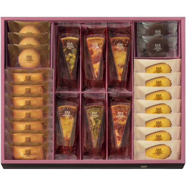 ●内容量:フィナンシェ7、マドレーヌ7、タルト・フリュイ6(フロマージュ・フレーズ2、ポム・ドゥース2、ピスタチオ・シトロン、ショコラ・マロン)、ラング・ド・シャ5(プレーン3、チョコレート2)