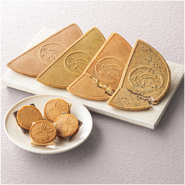 ●内容量:鎌倉半月(抹茶風味2、小倉風味3、ごま半月・りんご半月 各5)、鎌倉チョコサンドだょ・鎌倉マロンサンドだょ 各3