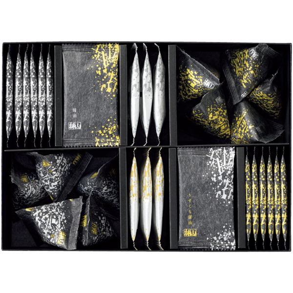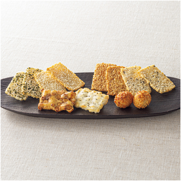 ●内容量:慶長(醤油6、しぶき海苔6、胡麻6、うすくち醤油6)、慶凰(醤油5、塩5)、豆柿3、かきもち昆布3