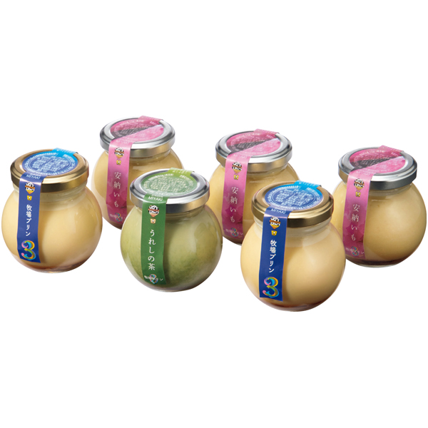 ●内容量:牧場プリン2、安納いも3、うれしの茶 計6