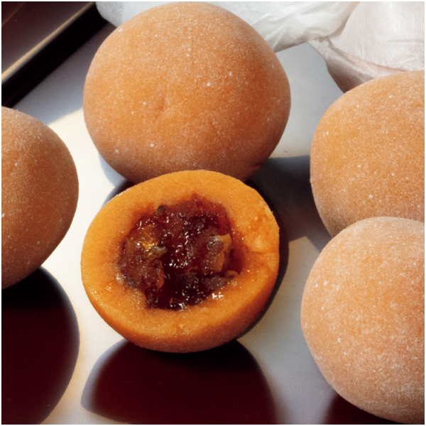 ドライいちじくを甘さを抑えた白あんで包んだ新商品の一口菓子のはるかと、会津みしらず柿の上品な甘さを表現した是山の詰合せ。