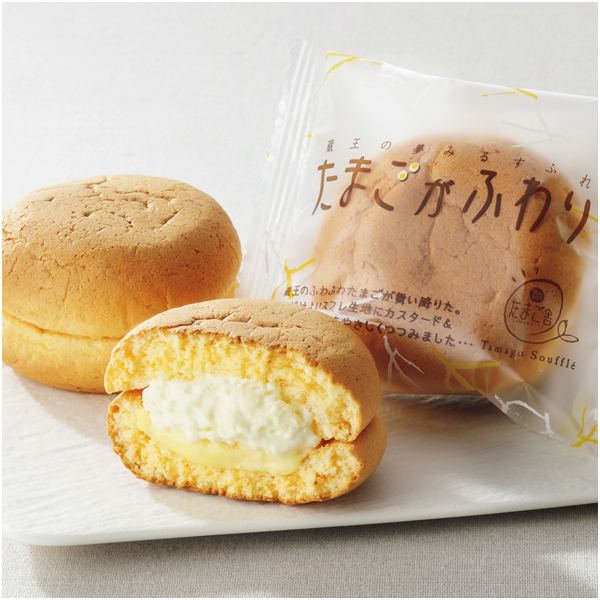 宮城県産の卵を使用。ふわふわスフレにチーズクリームとカスタードクリームをサンドしました。