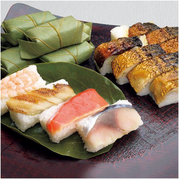 ●内容量:柿の葉ずし2種5個(鯖3、鮭2)195g、柿の葉ずし2種5個(穴子3、海老2)195g、柚庵焼鯖ずし(7切カット)300g