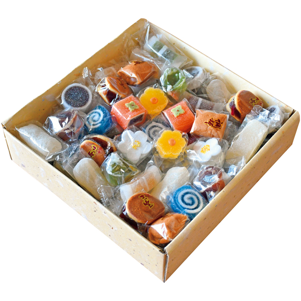 ●内容量:羽二重餅、羽衣羊羹、三笠、調布、羊羹結び、柿、なると巻、満月羊羹、梅ゼリー、水仙 計750g