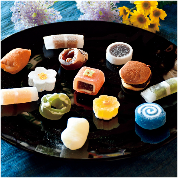 個包装したゼリーやお餅、羊羹など一口サイズの和菓子です。食べやすく、携帯するのにも便利です。