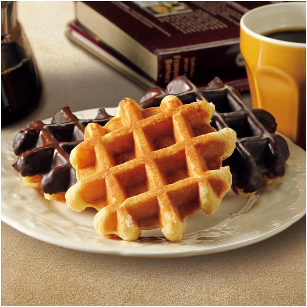 外はカリッと中はフンワリとした食感に仕上げました。「チョコレートワッフル」と「プレーンワッフル」が入ったギフトセットです。