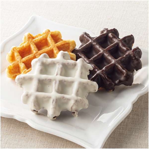 ベルギーの伝統製法で焼き上げた「チョコレートワッフル」、「ホワイトショコラワッフル」、「プレーンワッフル」が入ったギフトセットです。