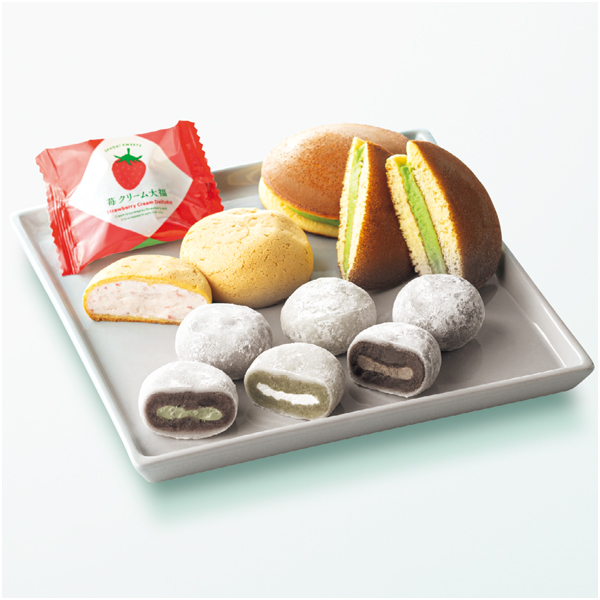 ●内容量:母の日苺クリーム大福(父の日黒ごま大福)4、喜久福抹茶2、喜久福ずんだ2、喜久福ほうじ茶2、ありがとうどら茶ん3、もちもちシュー3(母の日いちご、父の日キャラメル)