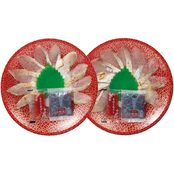 ●内容量:マフグたたき刺し30g×2、のどぐろ炙り刺し30g×2、ポン酢14g×4、もみじおろし2.5g×4